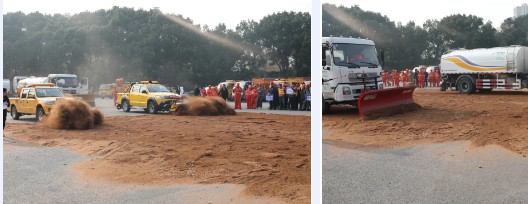 本次演練模擬暴雪藍色預警及全區出現中雪且道路結冰實況條件下,區抗雪辦啟動抗雪防凍四級應急響應,按信息發布、快速集結、演練開始、應急處置、演練結束全流程,實戰演練人工掃雪、機械掃雪、道路防凍、水管防凍等四個科目。