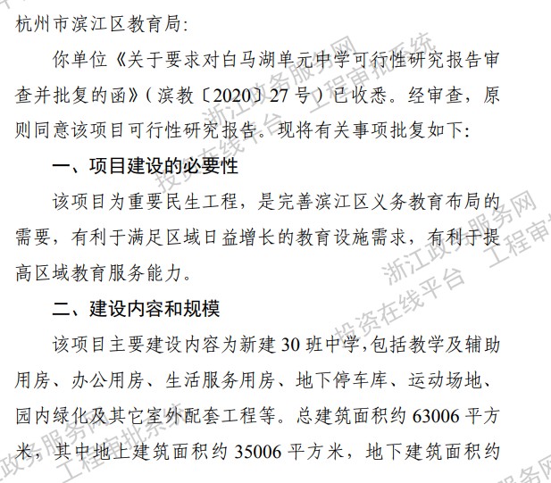 白馬湖單元中學可研批復