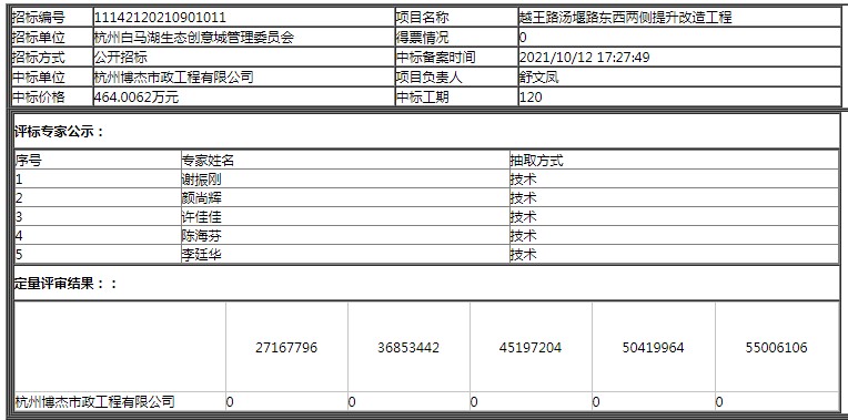 來源: 杭州公共資源交易網 發布時間: 2021-10-12 16:23 點擊率: