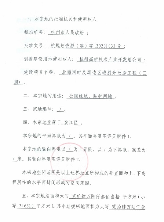 北塘河工程三期國有建設用地劃撥決定書