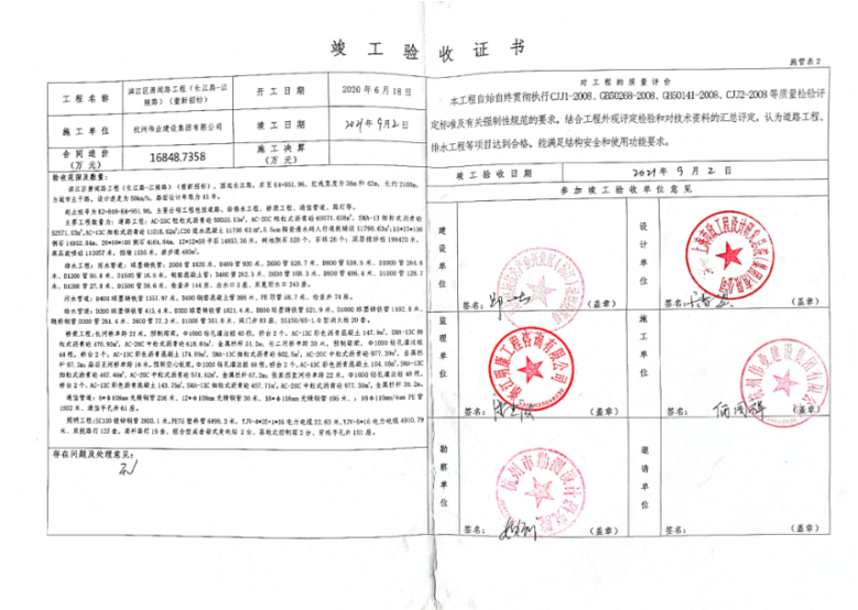 竣工驗收時間:2021年9月2日,驗收結果:合格
