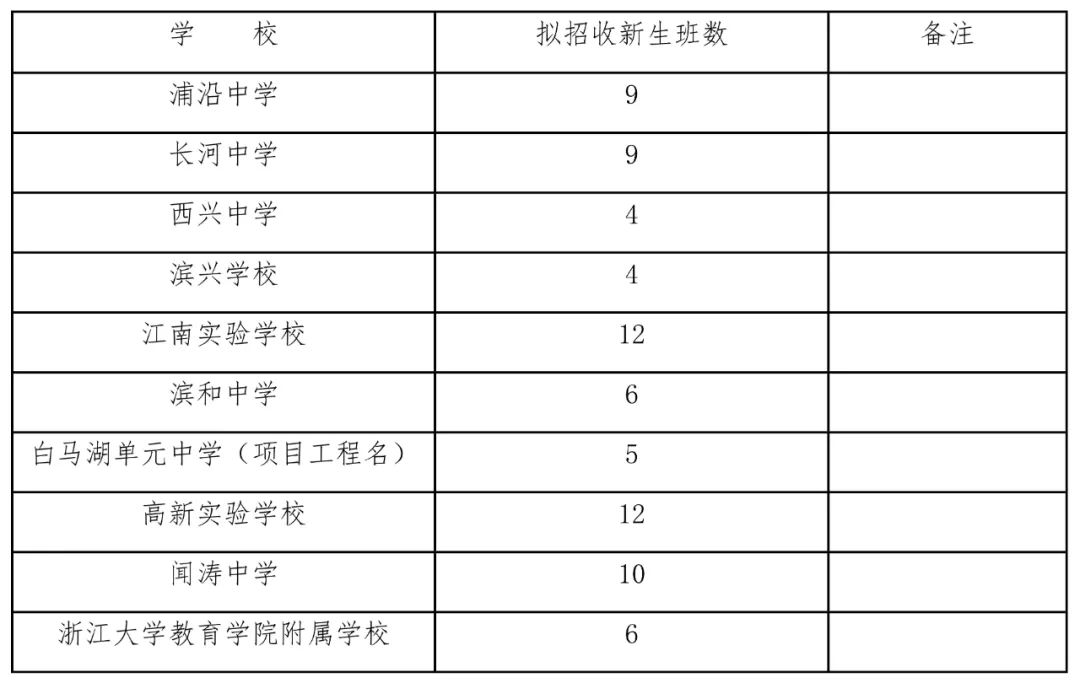 二、2021年濱江區(qū)公辦初中招生計(jì)劃
