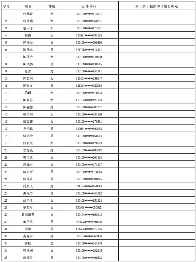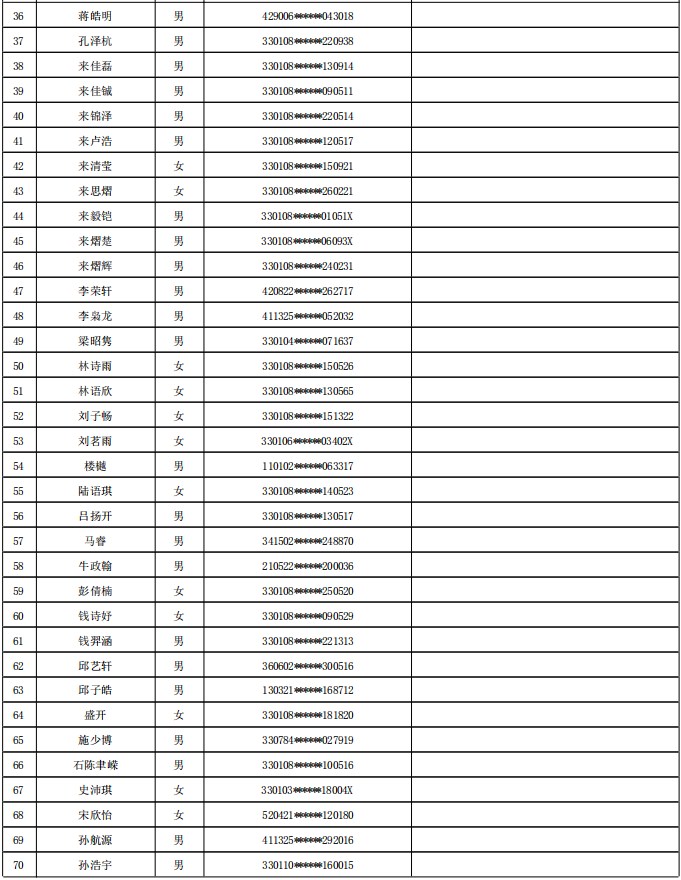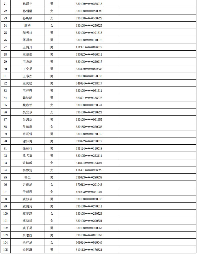 2021年杭州市濱江區濱蘭實驗學校錄取名單