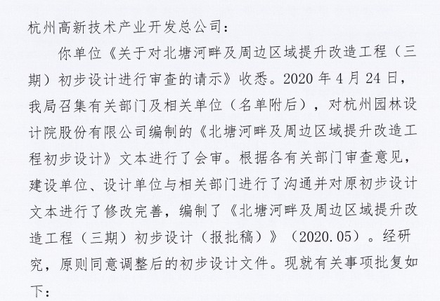 北塘河項目三期初步設計的批復