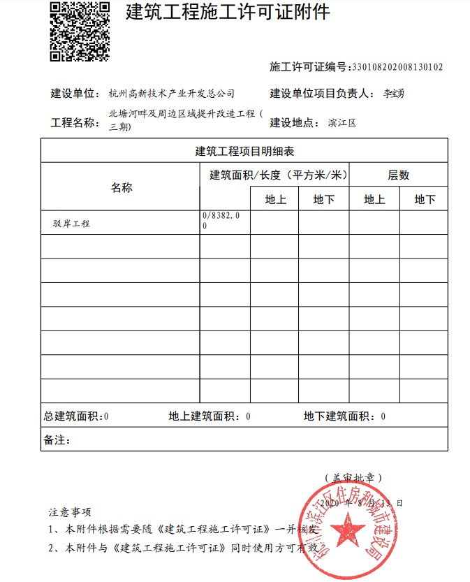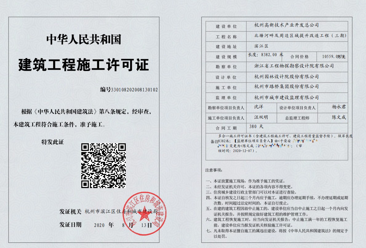北塘河項(xiàng)目更換后的施工許可證