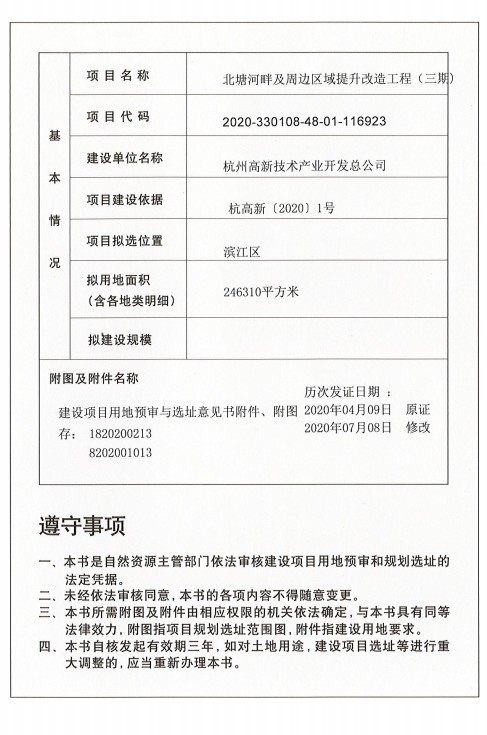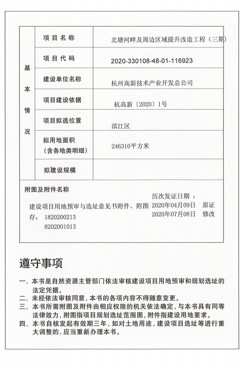 北塘河建設(shè)項(xiàng)目用地預(yù)審與選址意見(jiàn)書(shū)