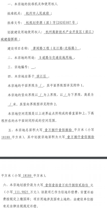 蕭聞路(長(zhǎng)江路-光裕路)劃撥決定書.pdf