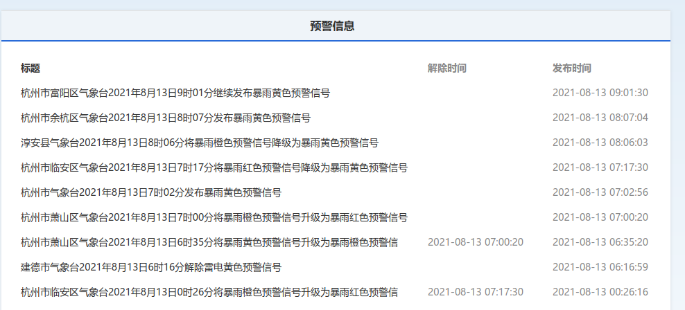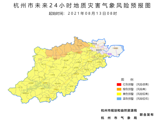 今天08時至08月14日08時,杭州發布地質災害氣象風險預報,請密切關注雨量情況,做好地質災害防范工作!