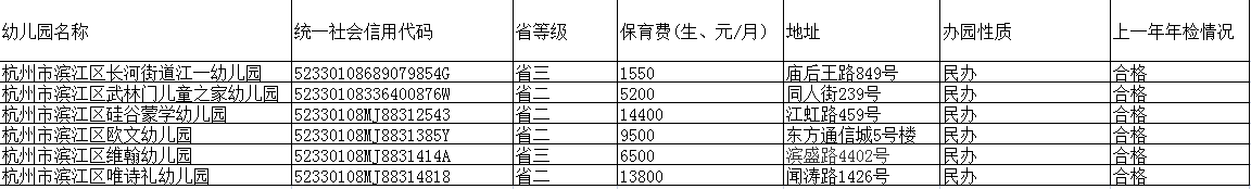 濱江區(qū)民辦幼兒園的辦學(xué)情況和收費(fèi)信息
