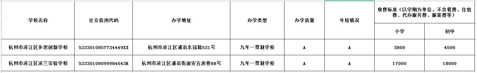 濱江區(qū)民辦學(xué)校的辦學(xué)情況、年檢情況和收費(fèi)信息