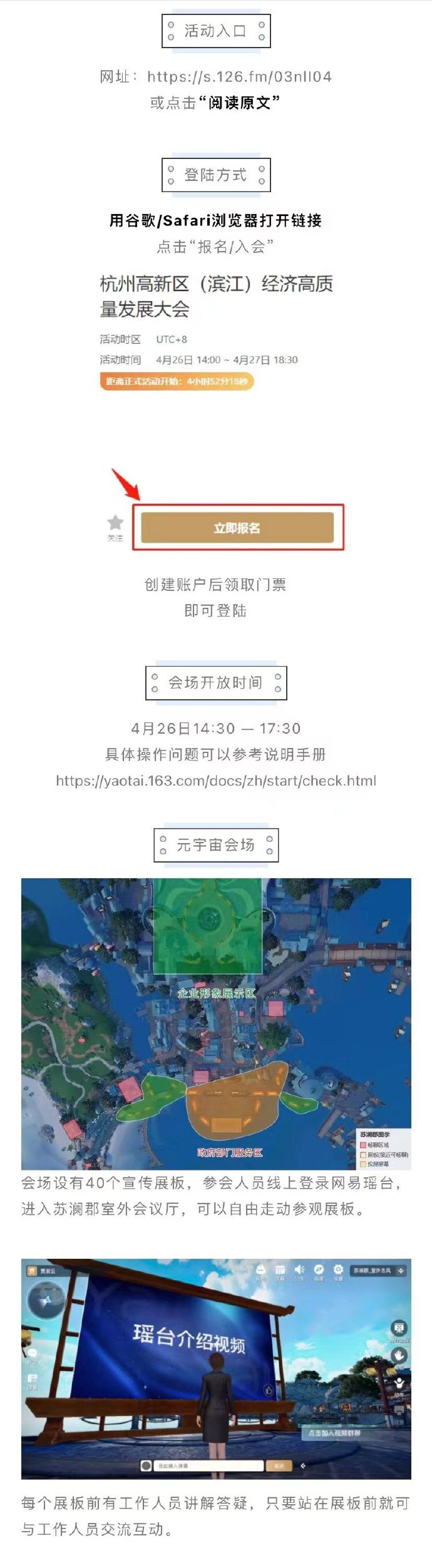 杭州高新區(濱江)經濟高質量發展大會元宇宙會場將于4月26日14:30 — 17:30線上開放。為了增加大家現場體驗感,今天將開通本次大會的元宇宙會場,特邀您入場參觀。