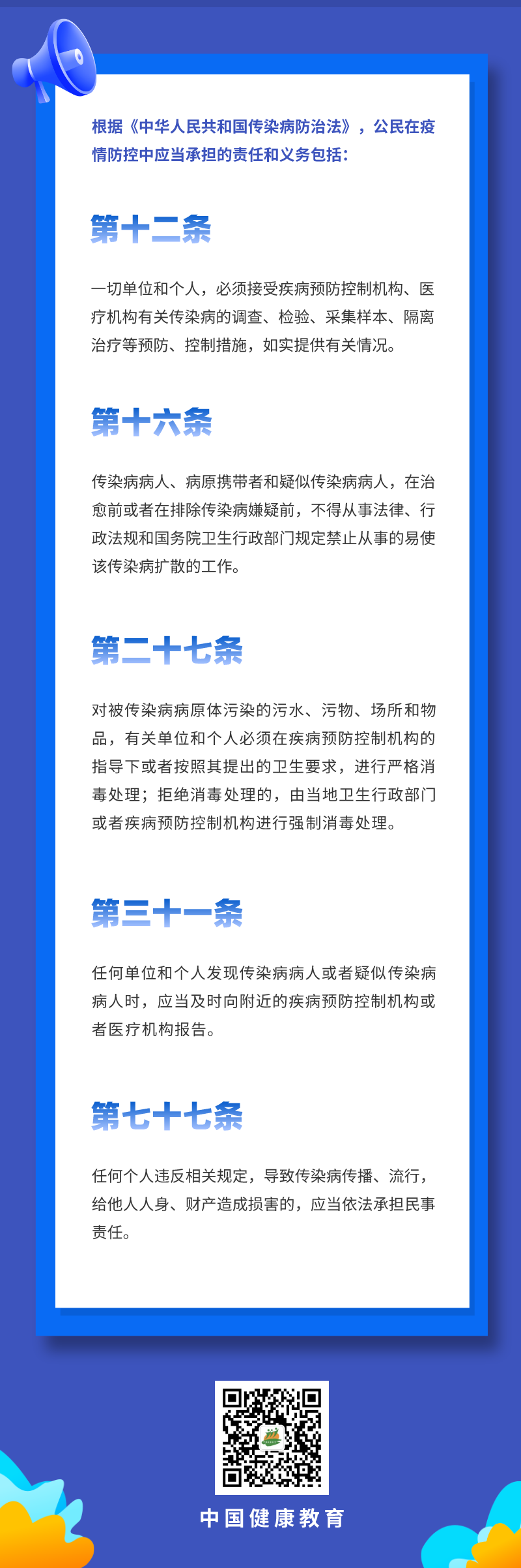 防疫科普 | 個人在傳染病疫情防控中有哪些責任和義務?