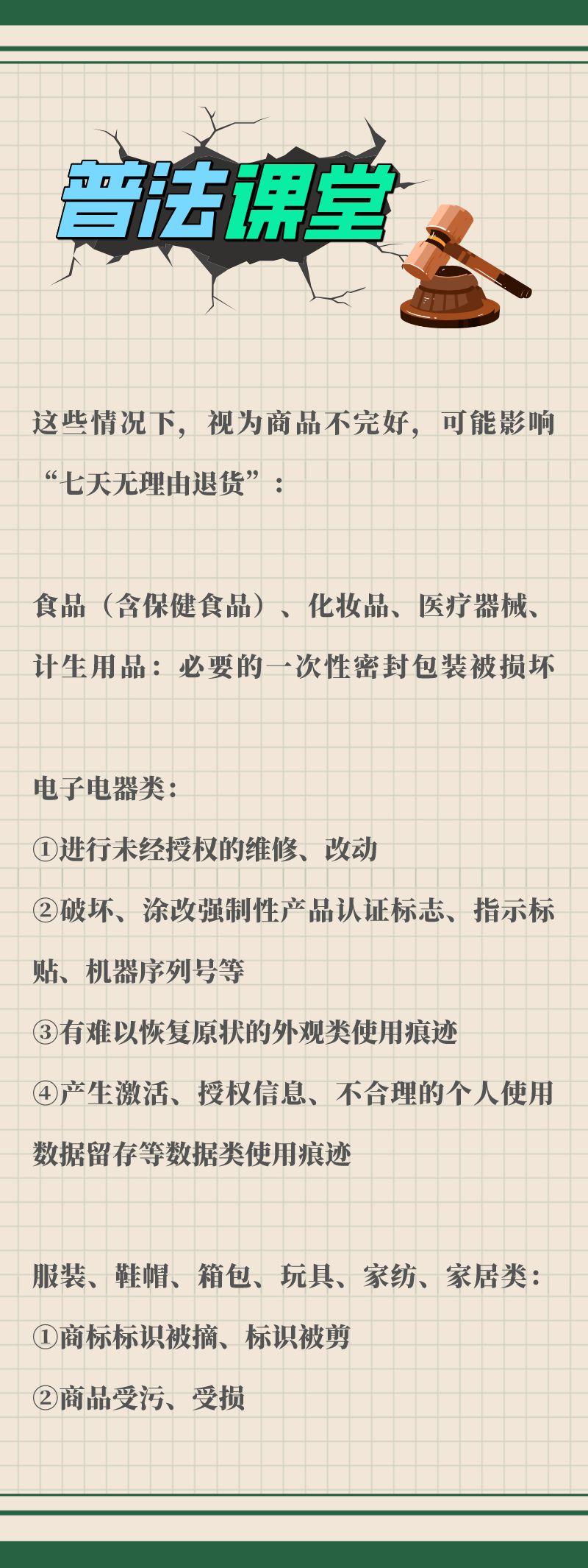 《網絡購買商品七日無理由退貨暫行辦法》第九條?對超出查驗和確認商品品質、功能需要而使用商品,導致商品價值貶損較大的,視為商品不完好。具體判定標準如下: