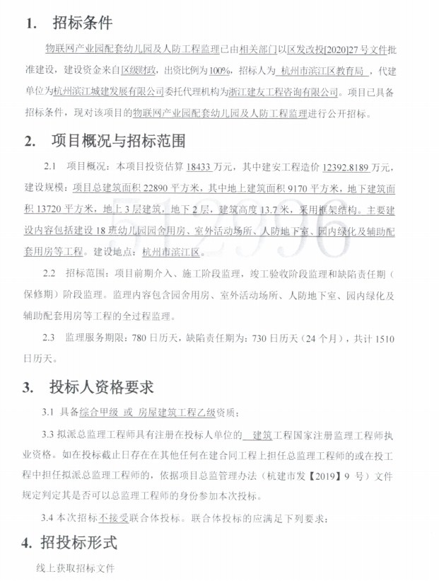 物聯(lián)網(wǎng)產(chǎn)業(yè)園配套幼兒園及人防工程項目監(jiān)理招標公告