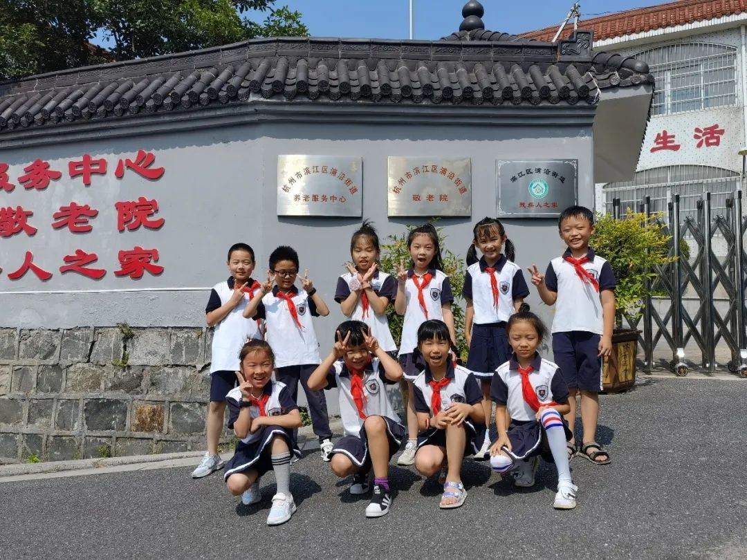 8月2日上午,頭頂炎炎烈日,杭州江南實驗學校教育集團濱興學校新三(4)中隊的同學們前往濱江區浦沿街道的敬老院,開展了以“尊老敬老,我們在行動”為主題的假日小隊活動,為老人們送去愛心。