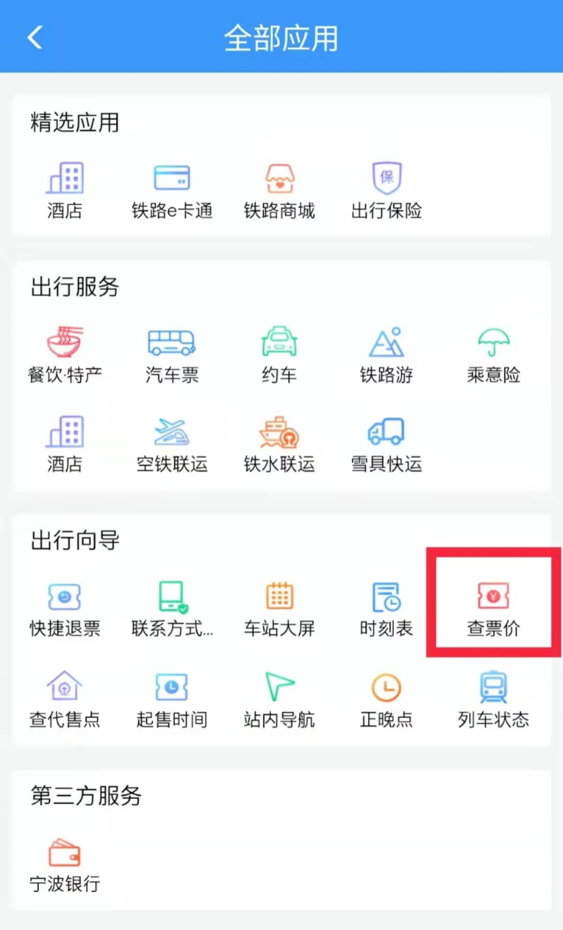 公布票價可在鐵路12306APP中查詢: