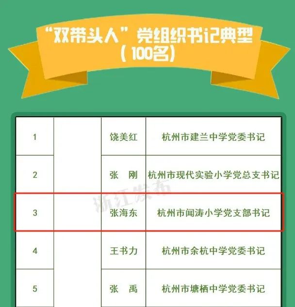 近日,中共浙江省委教育工作委員會辦公室印發《關于公布首批省中小學校示范性黨組織和“雙帶頭人”黨組織書記典型選樹名單的通知》,杭州江南實驗學校黨委和杭州市聞濤小學黨支部書記張海東入選!