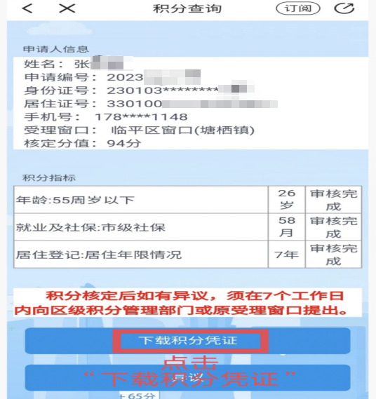 第四步,在“積分查詢”界面下端下載積分憑證。