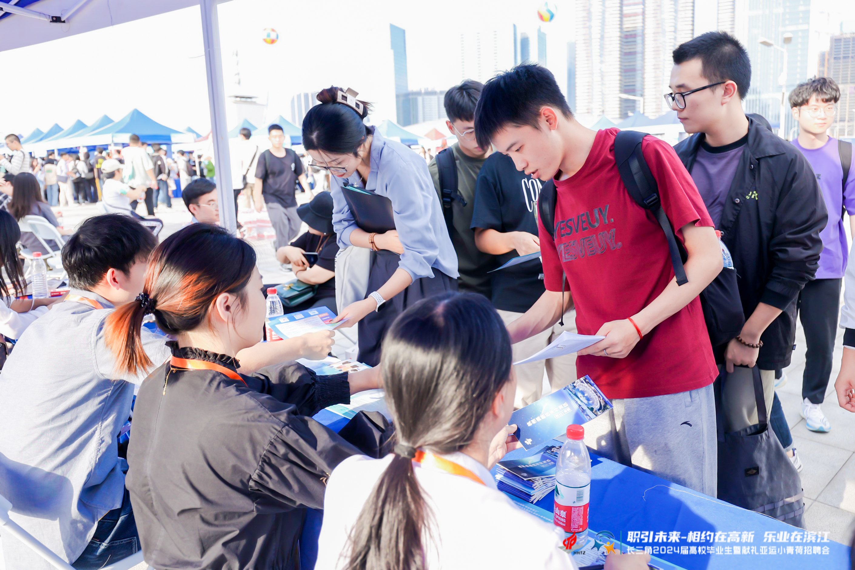 近日,陳同學參加的這場招聘會有點特殊,它位于杭州亞運會開閉幕式主會場“大蓮花”之下,而且是為長三角2024屆高校畢業生以及亞(殘)運會志愿者“小青荷”量身定制。