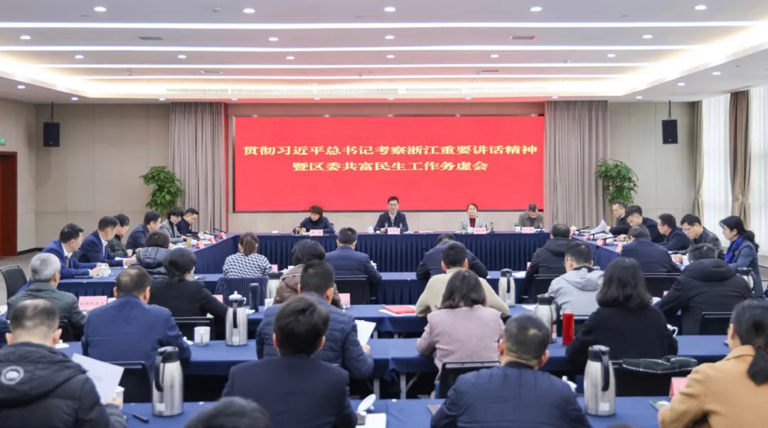 12月13日上午,區委共富民生工作務虛會召開。區委書記章登峰主持會議并講話,強調要深入學習習近平總書記考察浙江重要講話精神,認真落實中央經濟工作會議和省市委全會精神,緊扣市委務虛會部署要求,匯改革之力,繪共富之景,打造更高能級的國際大都市核心城區。