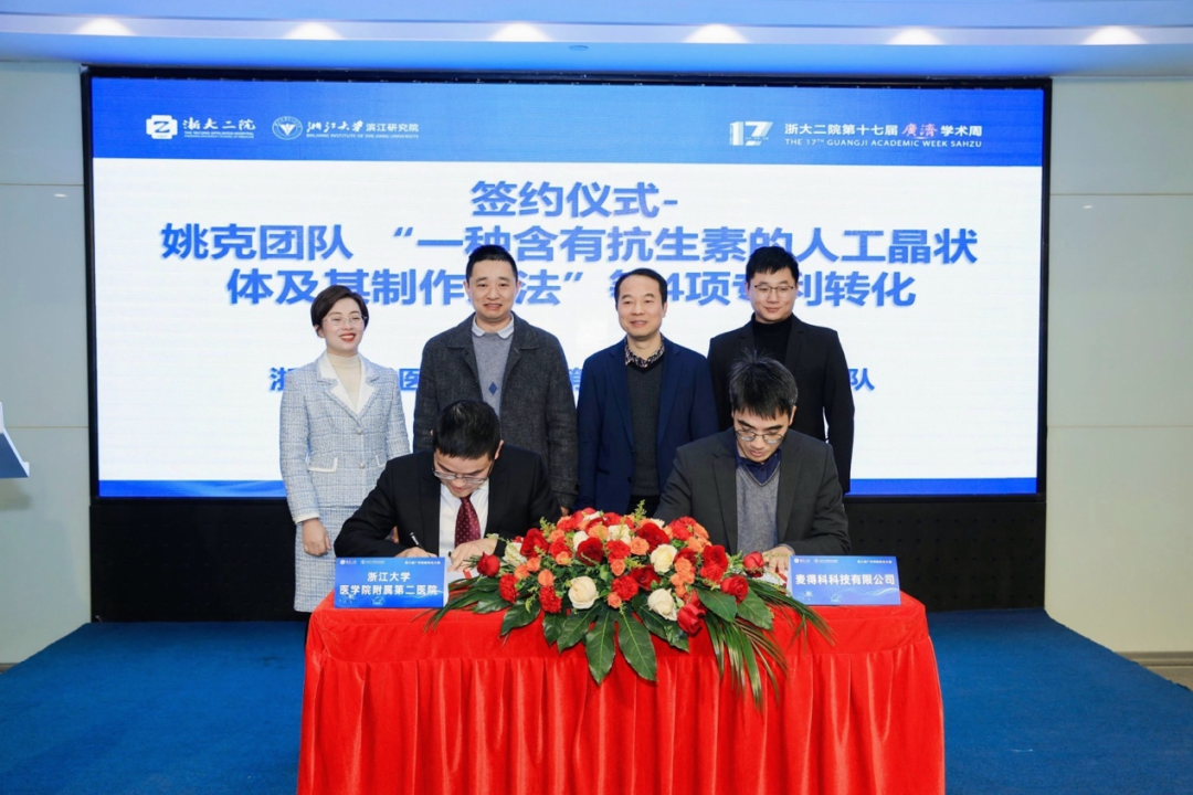 姚克教授團隊項目“一種含有抗生素的人工晶狀體及其制作方法”等4件專利與麥得科科技有限公司進行轉化簽約儀式。