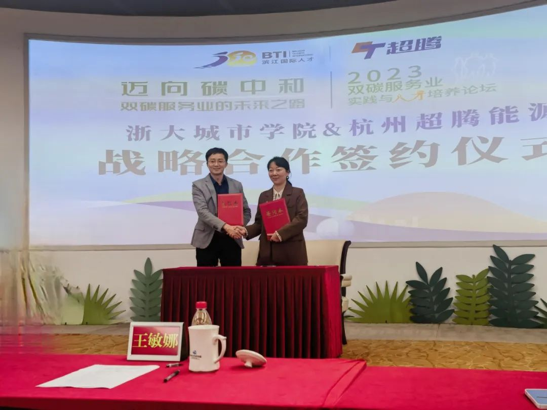 杭州超騰能源技術股份有限公司和浙大城市學院商學院、浙大城市學院“雙碳”研究中心舉行了“人才培養戰略合作”簽約儀式,雙方圍繞“雙碳”領域發展需求,聚焦行業共性關鍵核心技術,開展雙碳人才系統培養,進行高水平科研合作、共建產教融合平臺。