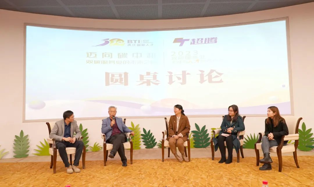 中國杭州低碳科技館前館長、杭州超騰能源技術股份有限公司董事長、浙大城市學院“雙碳”研究中心副研究員、浙江科技大學碳中和創新研究中心老師,超騰能源人事總監進行了圓桌對話,分別就雙碳學科的設立、課程的安排,雙碳人才的培養、引進和“產學訓”結合提升職業能力等建言獻策、探討交流。