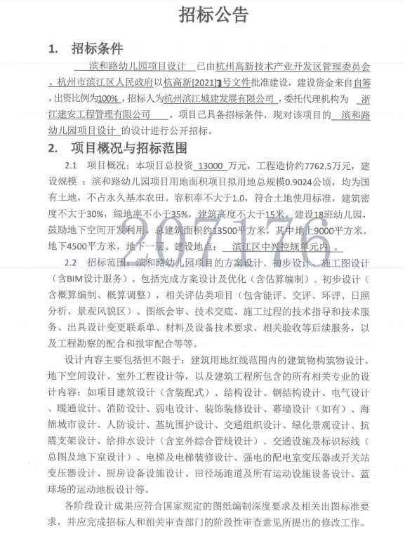 濱和路幼兒園設(shè)計招標公告
