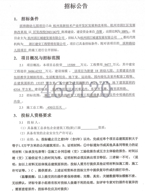 濱和路幼兒園施工單位招標(biāo)公告