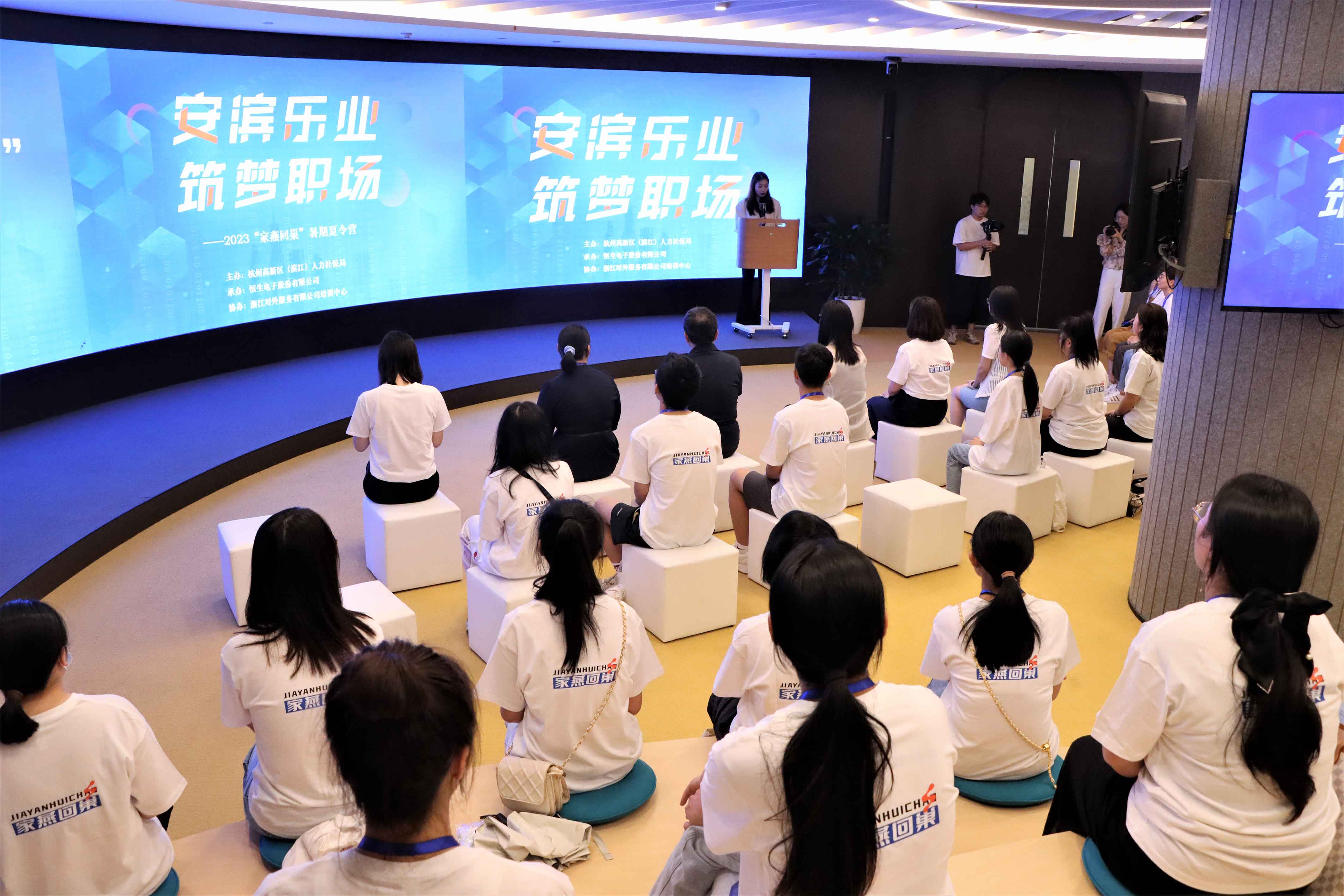 區人力社保局相關負責人在現場介紹,2023年“家燕回巢”暑期夏令營以“安濱樂業,筑夢職場”為主題,搭建“線上+線下”就創服務平臺,面向高新區(濱江)大學生開展職業體驗、職業指導、技能提升、就業推薦等系列活動。
