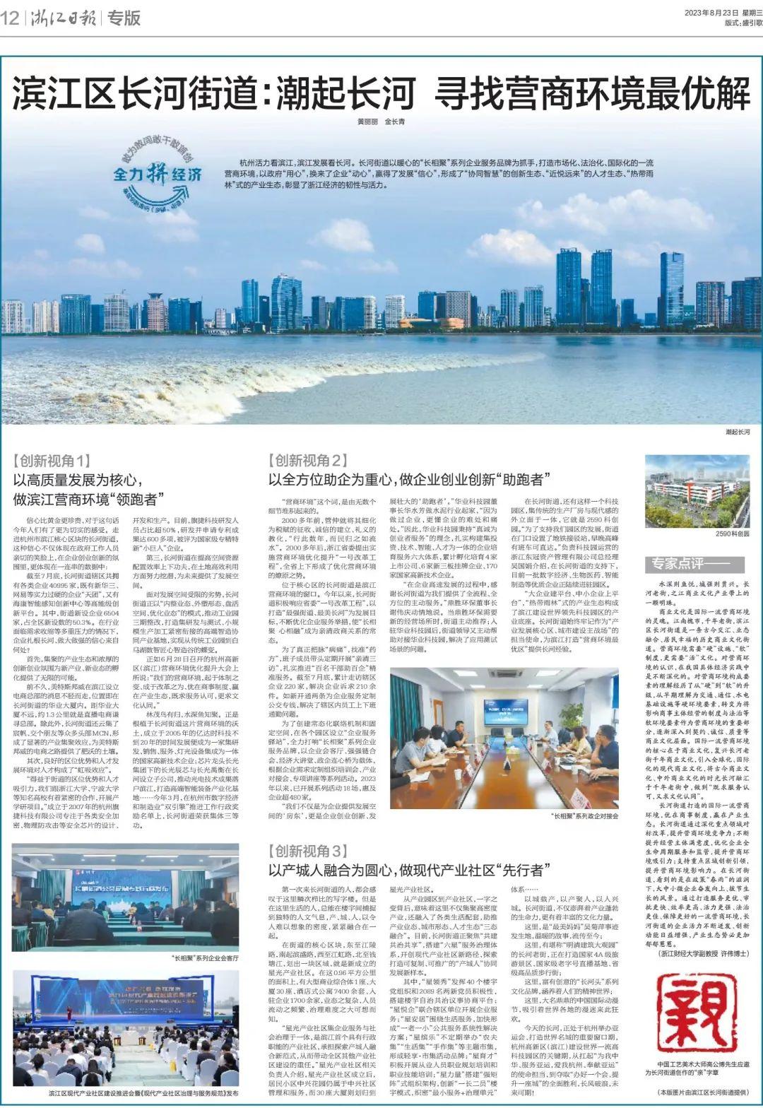 刊登《濱江區長河街道:潮起長河尋找營商環境最優解》