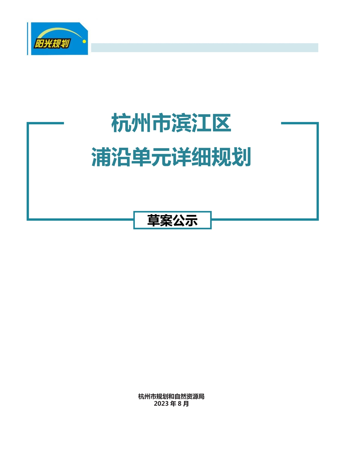 杭州市濱江區(qū)浦沿單元詳細(xì)規(guī)劃(草案)公示