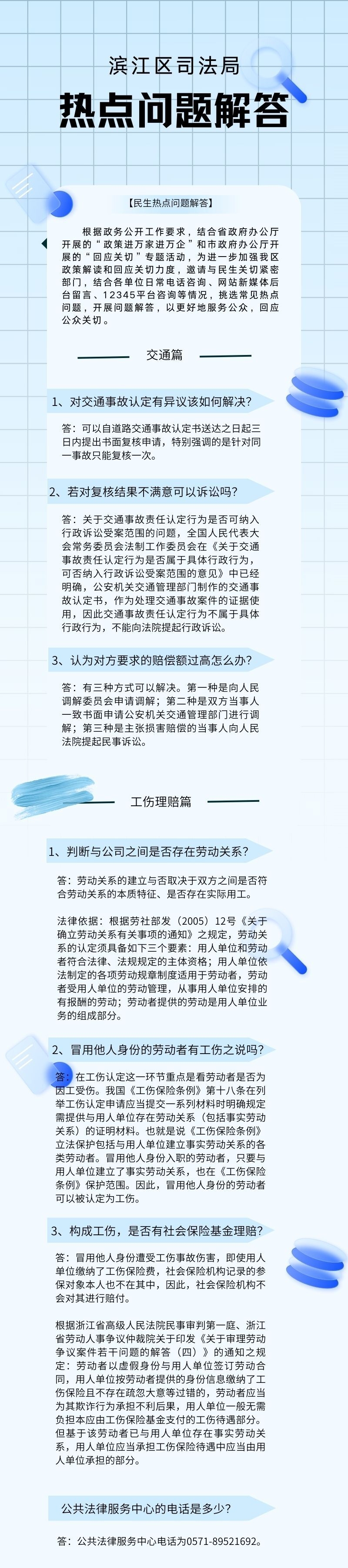 【熱點問題解答】濱江區司法局--交通和工傷理賠法律解答