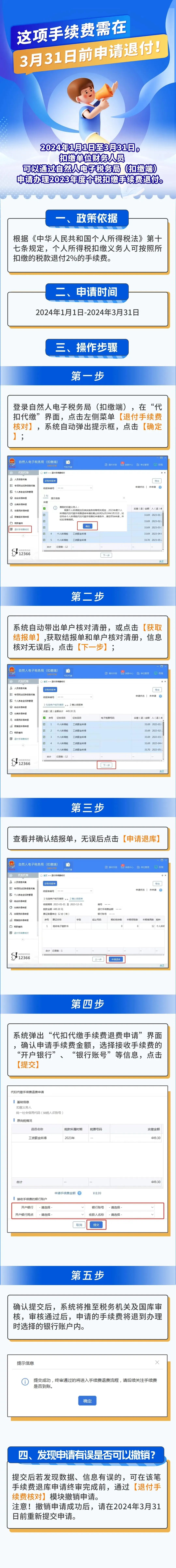 各單位注意啦!2024年1月1日至3月31日,2023年度個稅扣繳手續(xù)費退付已開啟辦理,扣繳單位財務(wù)人員不要錯過時間!一起來看具體操作。