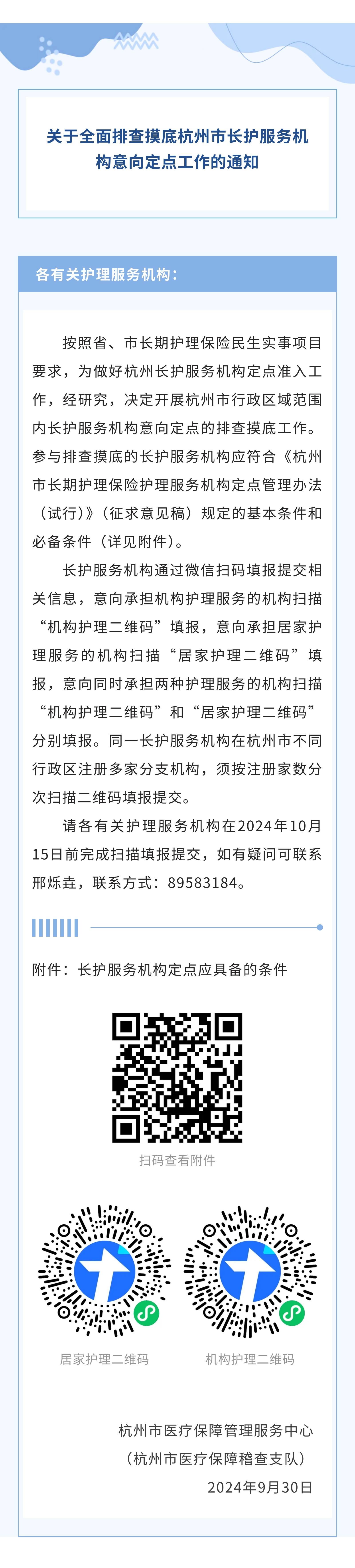 關于全面排查摸底杭州市長護服務機構意向定點工作的通知