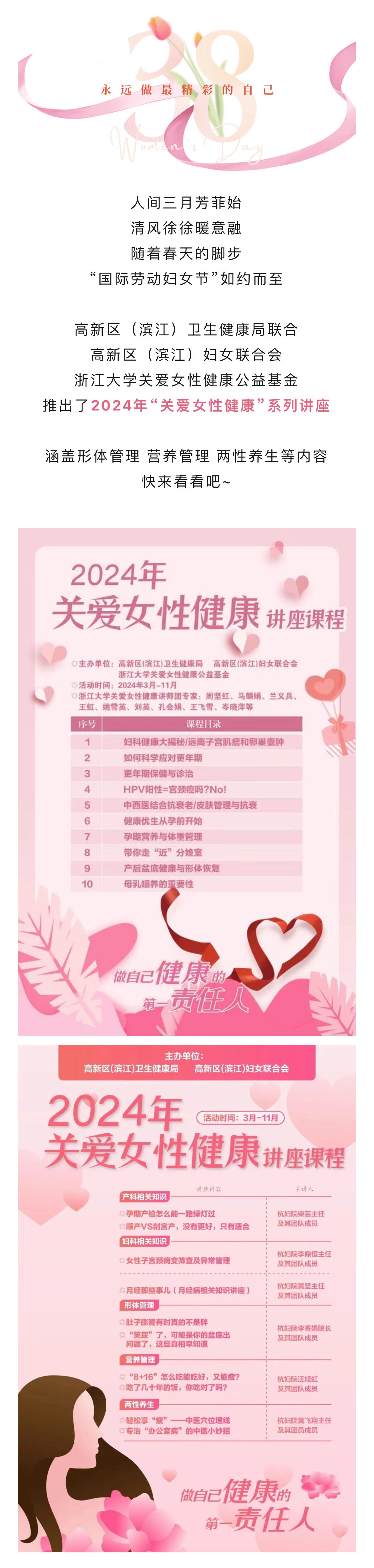 高新區(濱江)衛生健康局聯合高新區(濱江)婦女聯合會、浙江大學關愛女性健康公益基金推出“關愛女性健康”系列講座