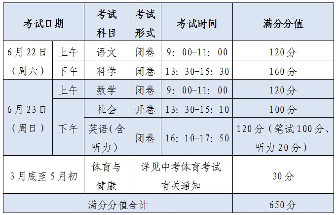 (二)中考包括文化課考試和體育考試。從2024年起,語文、數學、英語、科學、社會(含道德與法治、歷史與社會,下同)等5門科目采用省統一試題和分值。其中,社會2024年、2025年繼續開卷,2026年起閉卷。