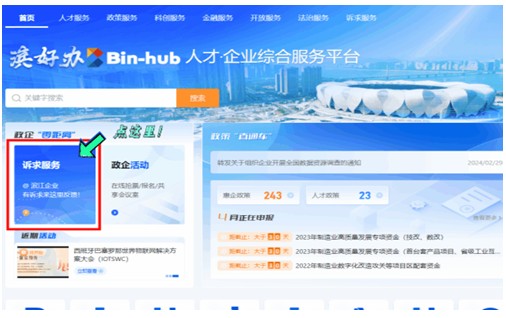 登陸“濱好辦”(如何訪問和登陸,指路→https://mp.weixin.qq.com/s/8D1Ksiu_RbT4QCEQ4GG7g),首頁找到“訴求服務”,點開即可查看各類訴求發起方式。