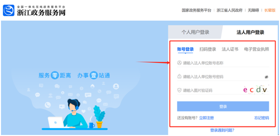 【可使用浙里辦法人賬號密碼、浙里辦APP掃碼或電子營業執照登錄】