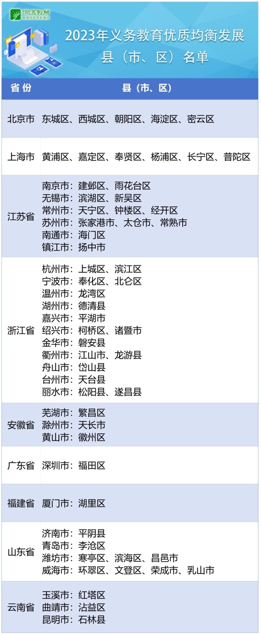 2023年義務(wù)教育優(yōu)質(zhì)均衡發(fā)展縣(市、區(qū))名單
