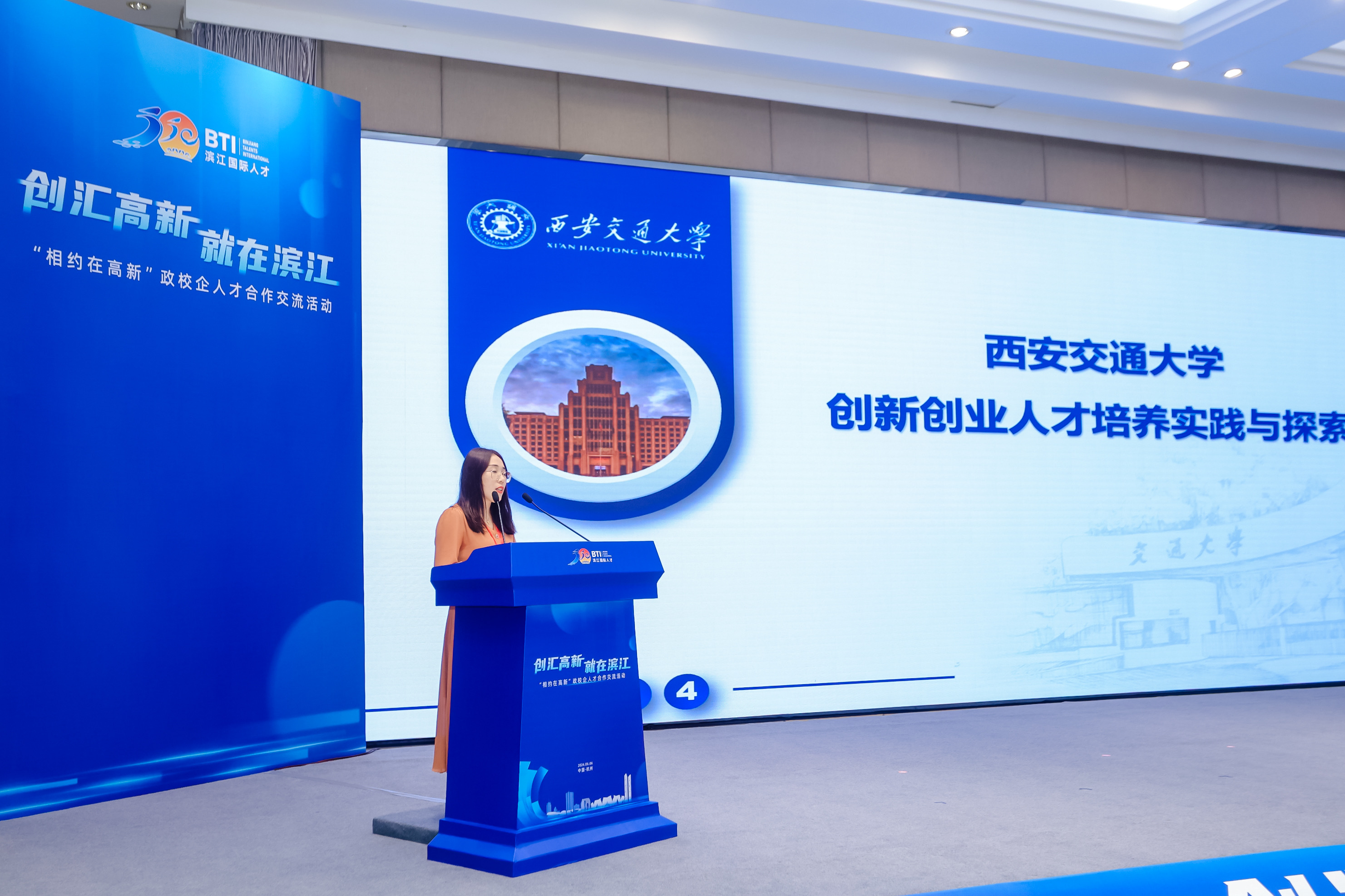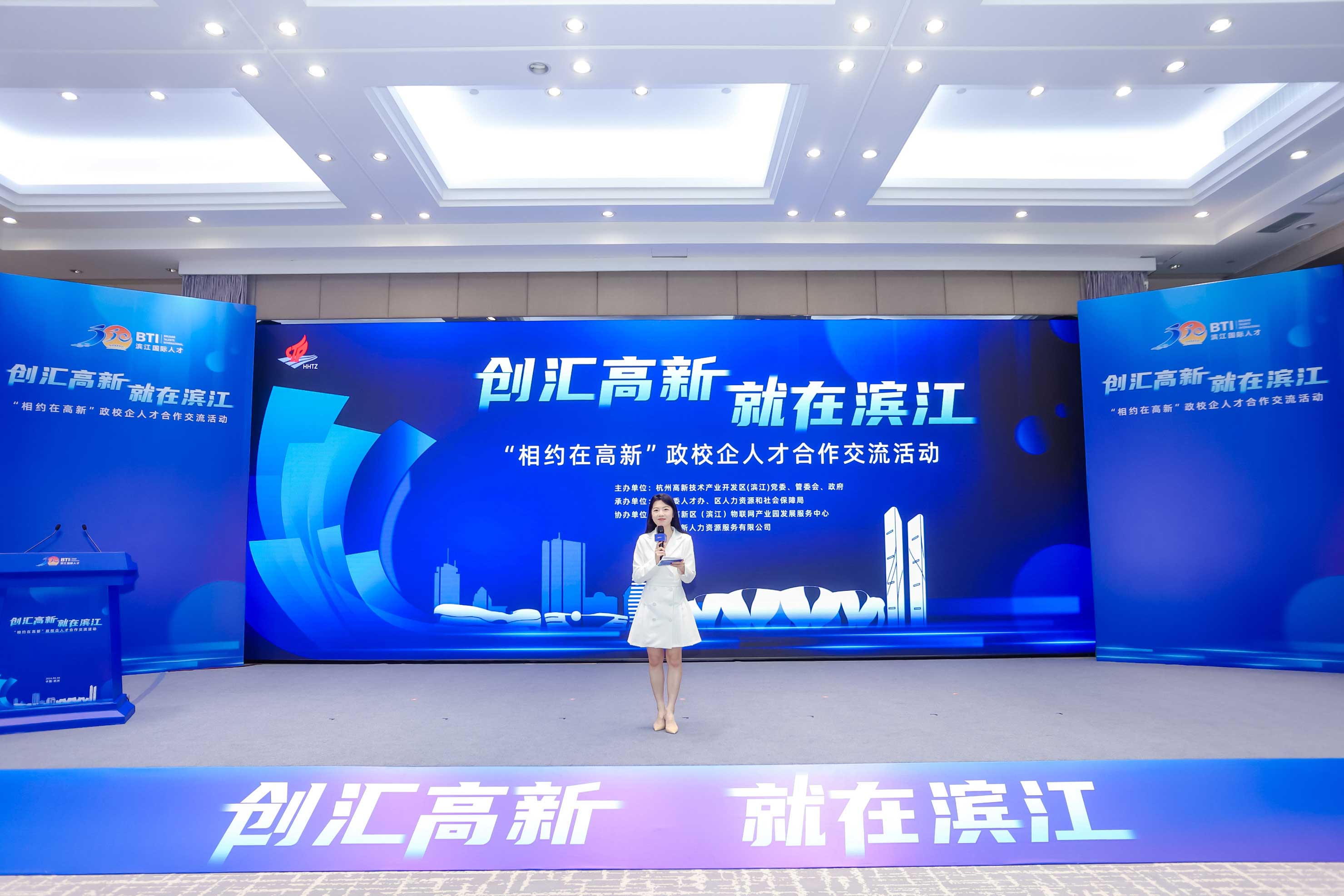 創匯高新 就在濱江——“相約在高新”政校企人才合作交流活動在智慧e谷舉行。區管委會副主任、副區長包嘉穎出席會議。