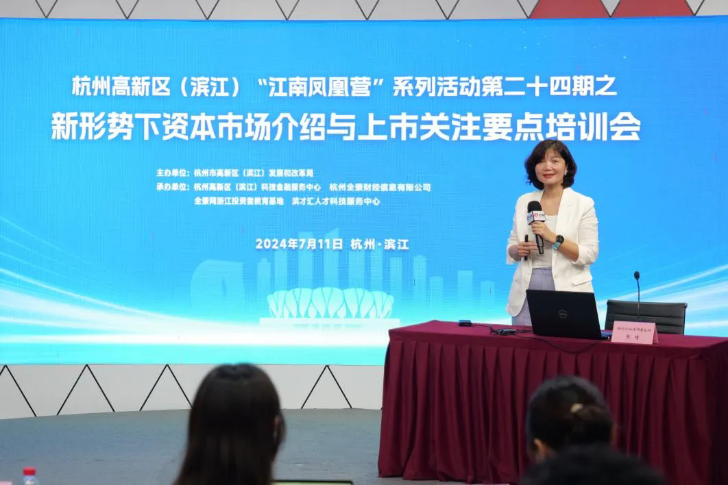 7月11日,杭州高新區(濱江)發改局指導科技金融服務中心,攜手全景網主辦的“新形勢下資本市場介紹與上市關注要點”專題培訓成功舉行。此次活動旨在幫助區內科技型企業應對中國資本市場注冊制改革、退市制度改革等新形勢,了解上市前合規風險點,掌握上市風險控制策略,助力企業順利進入資本市場。