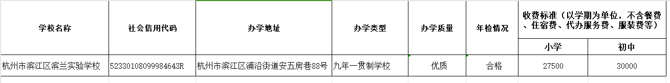 【民辦收費】濱江區民辦學校的辦學情況和收費信息