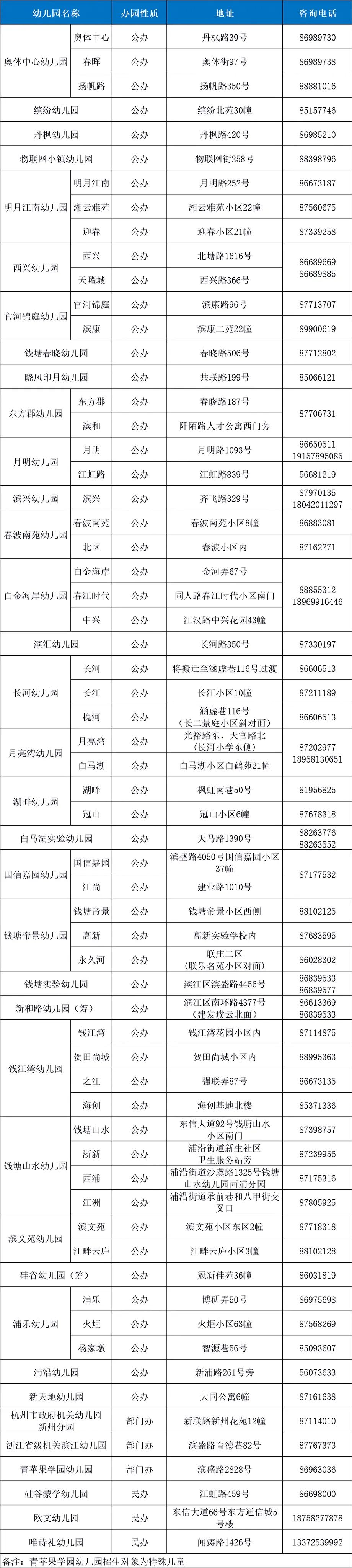 五、濱江區(qū)幼兒園招生咨詢電話