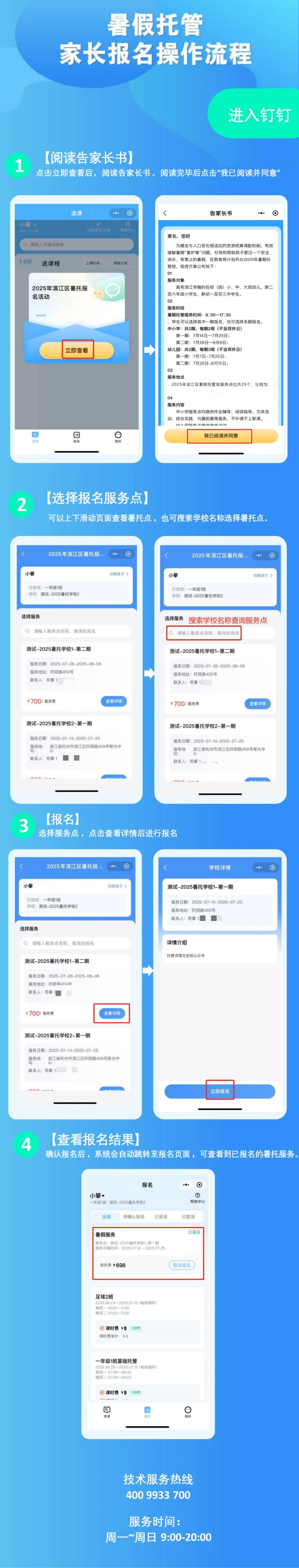 暑期托管服務時間:8:30—17:30,學生可以選擇其中一期報名,也可選擇多期報名。