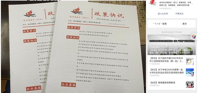 加強門戶網站建設,推進“杭州高新區政策百事通”微信訂閱號、“政策百事通為服務號”等平臺建設,及時發布國家、省,市區各類政策,為企業提供最新的政策申報通知及解讀。欄目包括“1+X”政策模塊、政策解讀模塊及更多(政策快訊、國高認定、辦事指南、常見問題)模塊,內容實時更新。