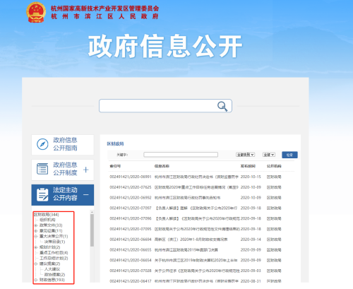 (一)加大主動公開力度。貫徹落實《國務院辦公廳關于全面推進基層政務公開標準化規范化工作的指導意見》(國辦發〔2019〕54號)、《浙江省人民政府辦公廳關于全面推進基層政務公開標準化規范化工作的實施意見》(浙政辦發〔2020〕16號)文件精神,配合區府辦完成財政預決算、公共資源交易、重大建設項目等3個領域基層政務公開標準目錄的制定,助力基層政務公開標準化規范化建設。調整更新區財政局主動公開基本目錄,2020年在杭州市濱江區人民政府信息公開門戶網站(以下簡稱門戶網站)財政專欄主動公開政府信息90條,同比增長20%,主要涵蓋政策文件、重大決策、重點工作、財政信息、行政執法等領域。