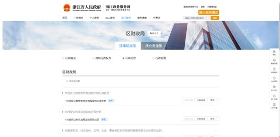 在浙江政務服務網及時公開新增行政處罰事項2項,累計公開部門權力事項128項。