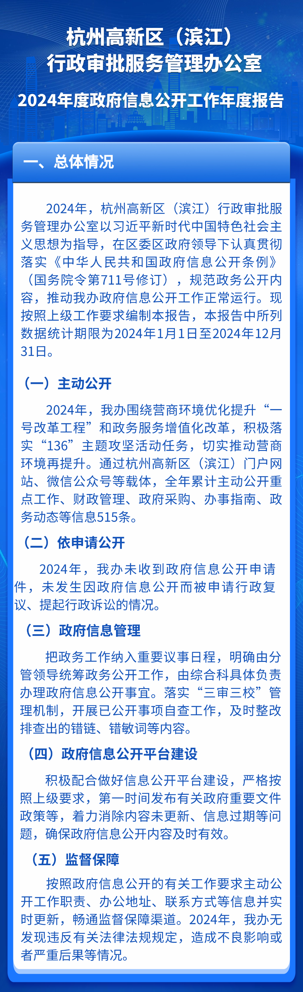 圖解 杭州高新區(濱江)行政審批服務管理辦公室2024年度政府信息公開工作年度報告