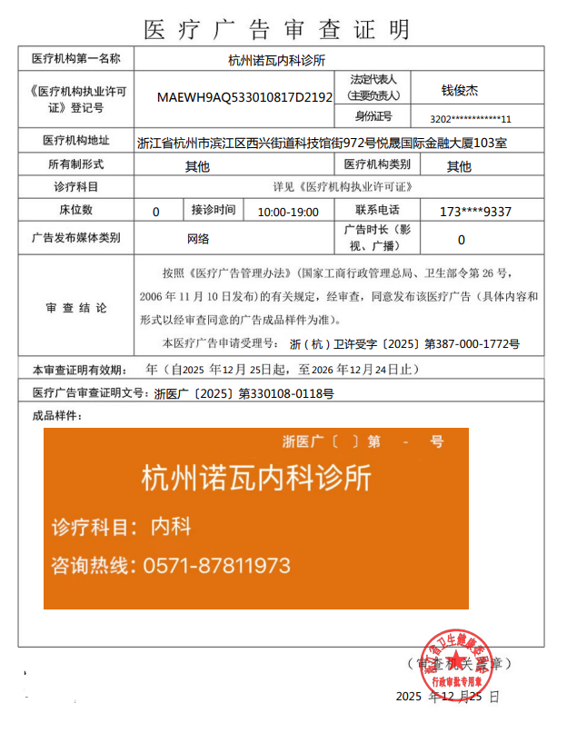 醫療廣告公示——杭州諾瓦內科診所